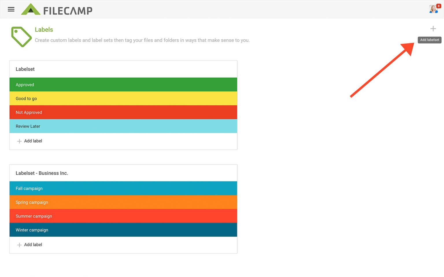 Next, click the Add Labelset icon in the Toolbar. Enter a name for your new Label set and click Create. The Label set is now created, and you can customize it with text and colors to fit your usage.